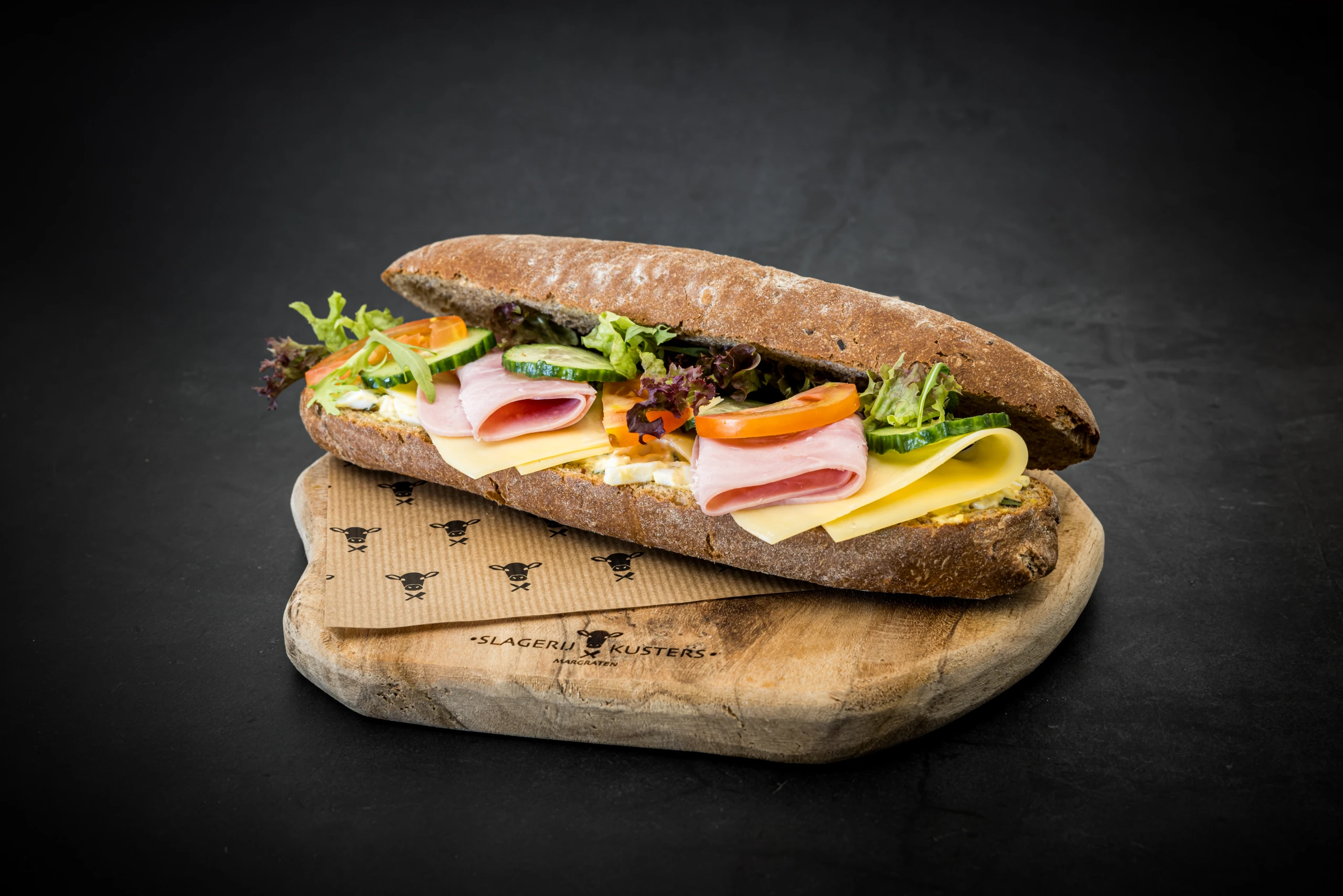 Kaas, ambachtelijke achterham, tomaat, komkommer, eiersalade en slagarnituur